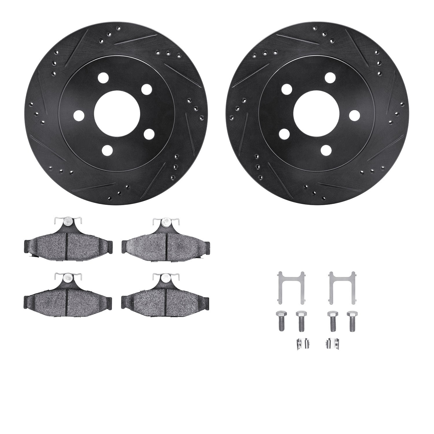 - DFC Rotors-Drilled & Slotted-Black w/ EURO 5000 Ceramic Brake Pads Incl Hdw