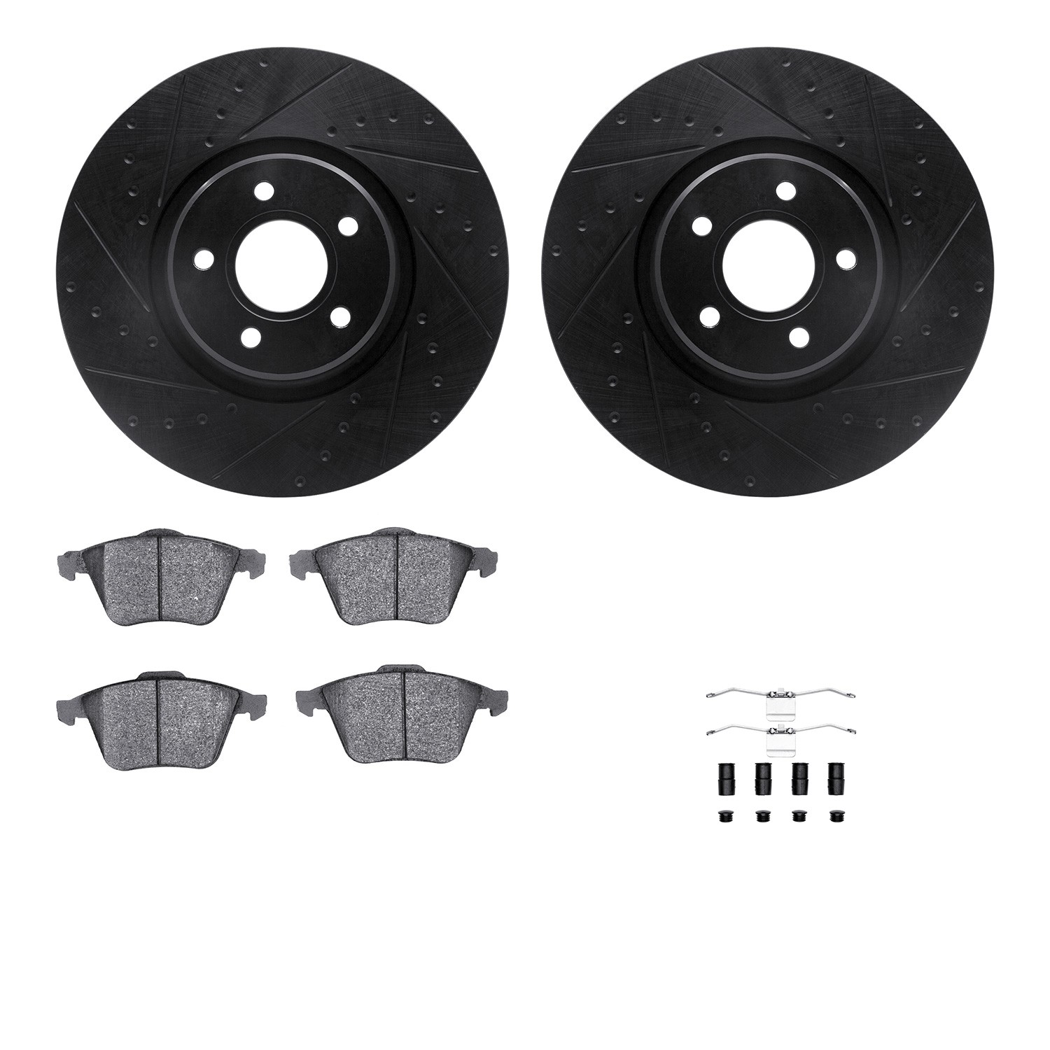- DFC Rotors-Drilled & Slotted-Black w/ EURO 5000 Ceramic Brake Pads Incl Hdw
