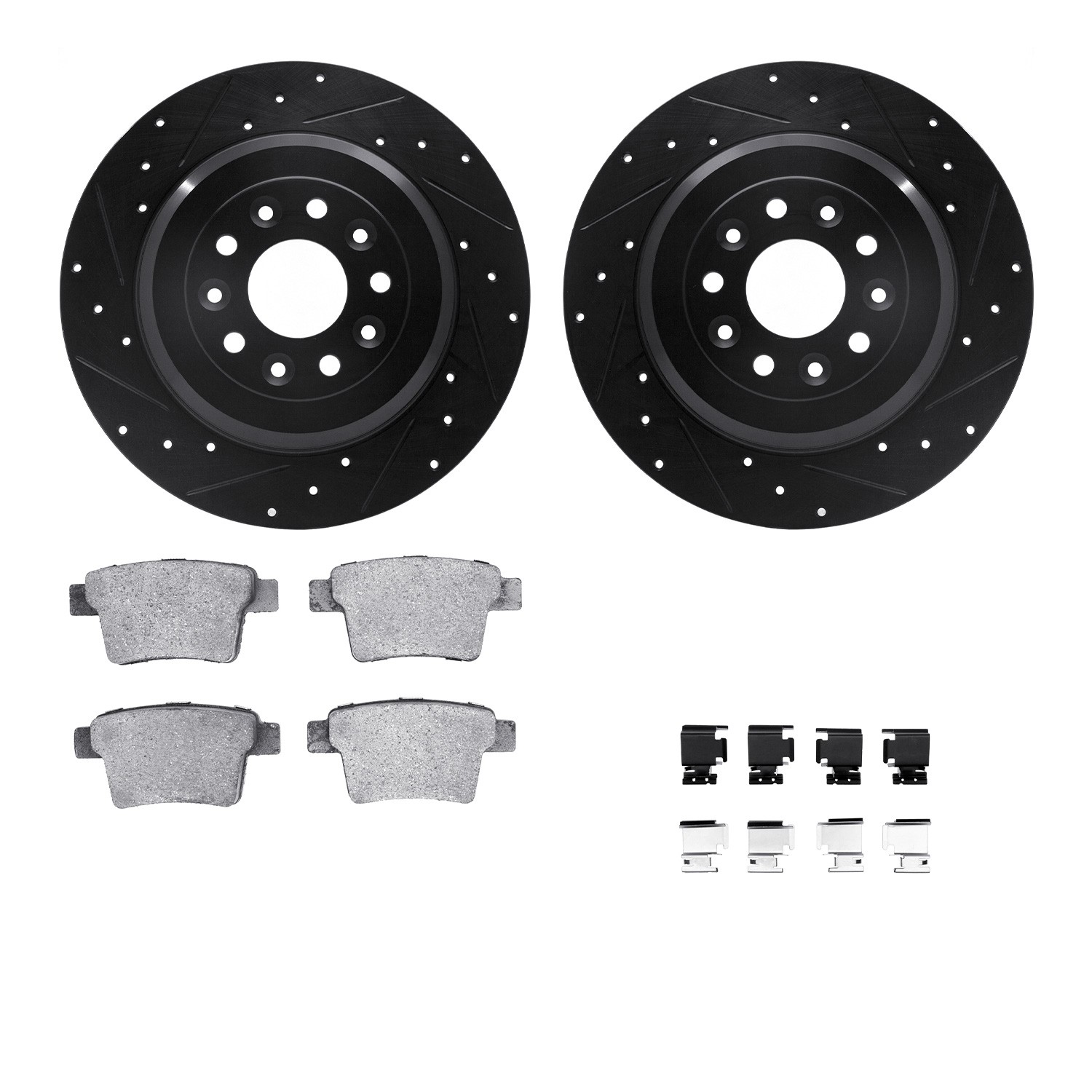 - DFC Rotors-Drilled & Slotted-Black w/ EURO 5000 Ceramic Brake Pads Incl Hdw