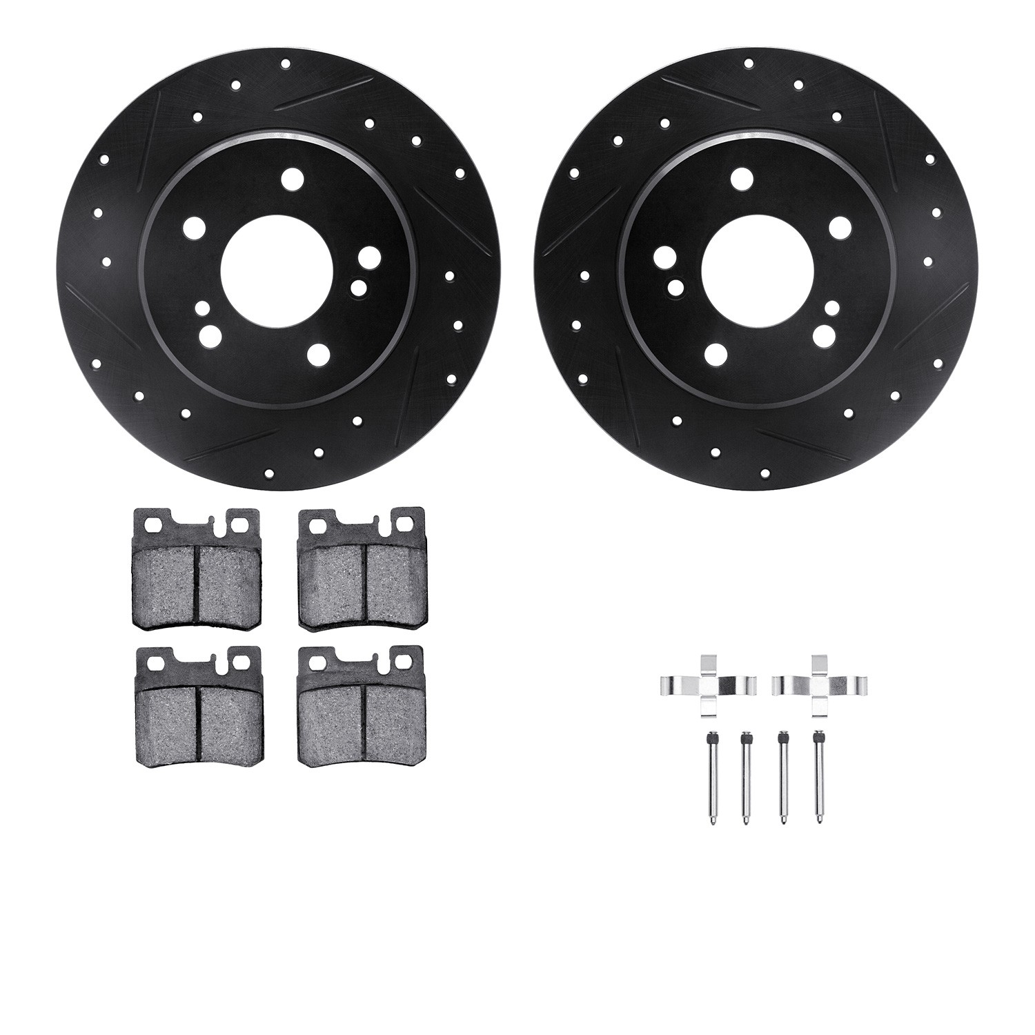 - DFC Rotors-Drilled & Slotted-Black w/ EURO 5000 Ceramic Brake Pads Incl Hdw