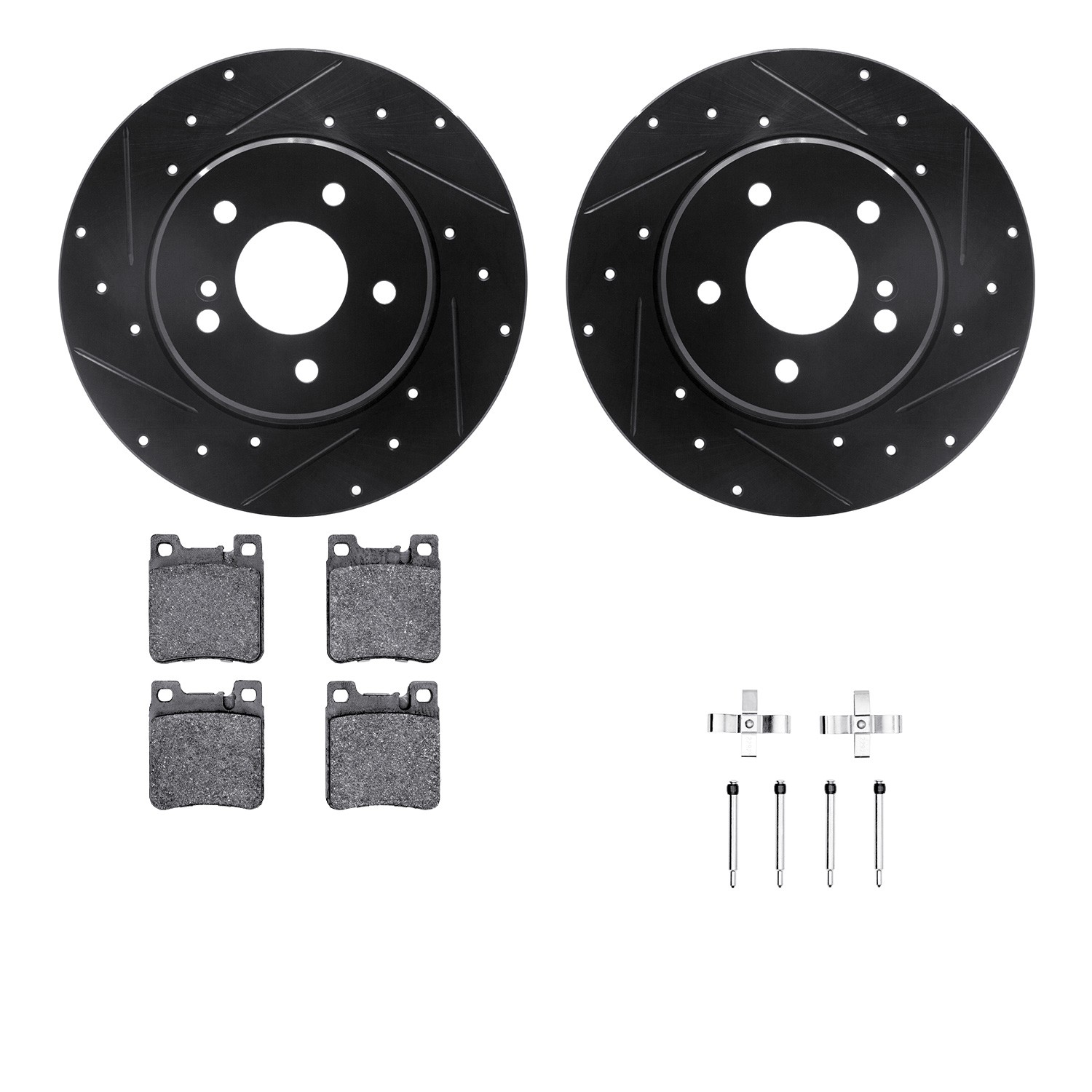 - DFC Rotors-Drilled & Slotted-Black w/ EURO 5000 Ceramic Brake Pads Incl Hdw