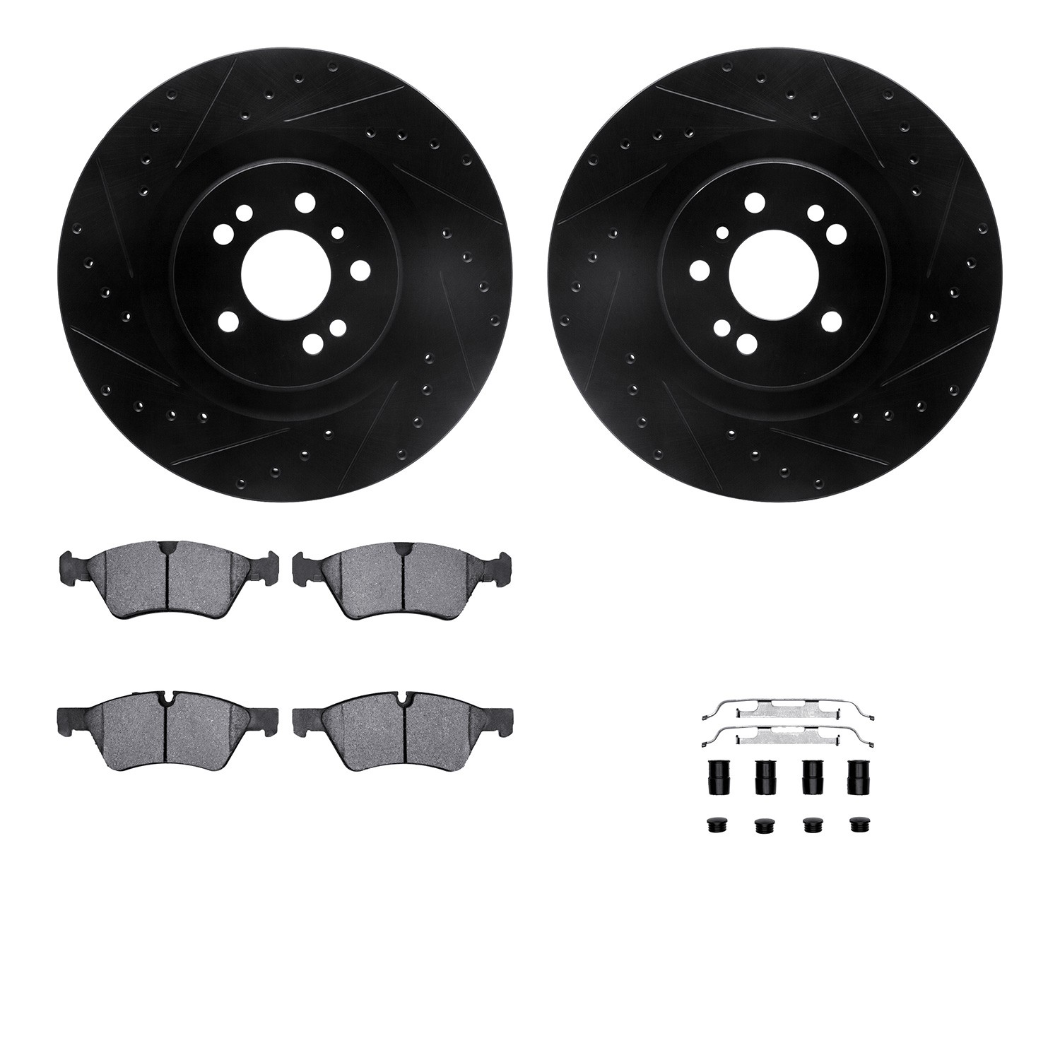 - DFC Rotors-Drilled & Slotted-Black w/ EURO 5000 Ceramic Brake Pads Incl Hdw
