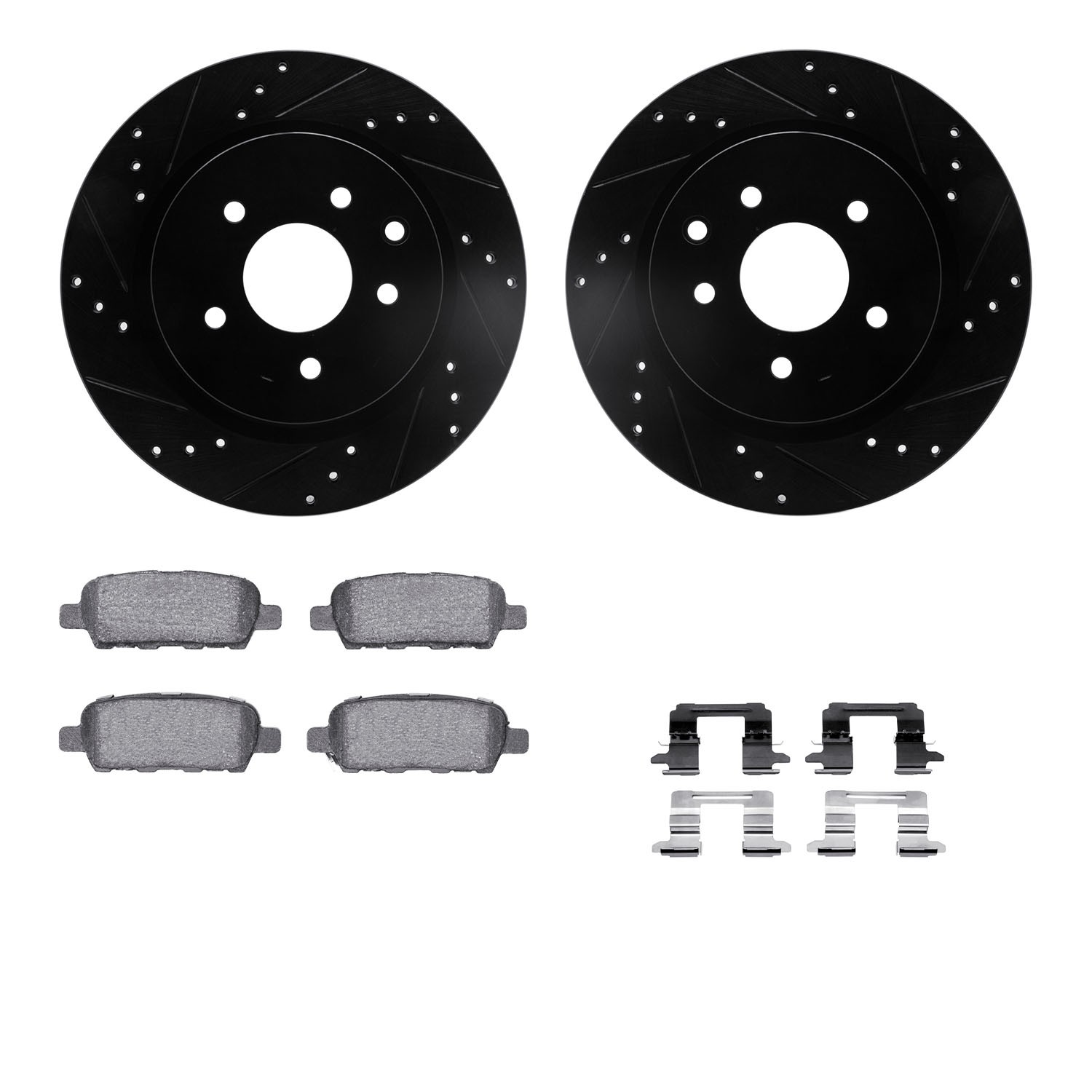- DFC Rotors-Drilled & Slotted-Black w/ EURO 5000 Ceramic Brake Pads Incl Hdw