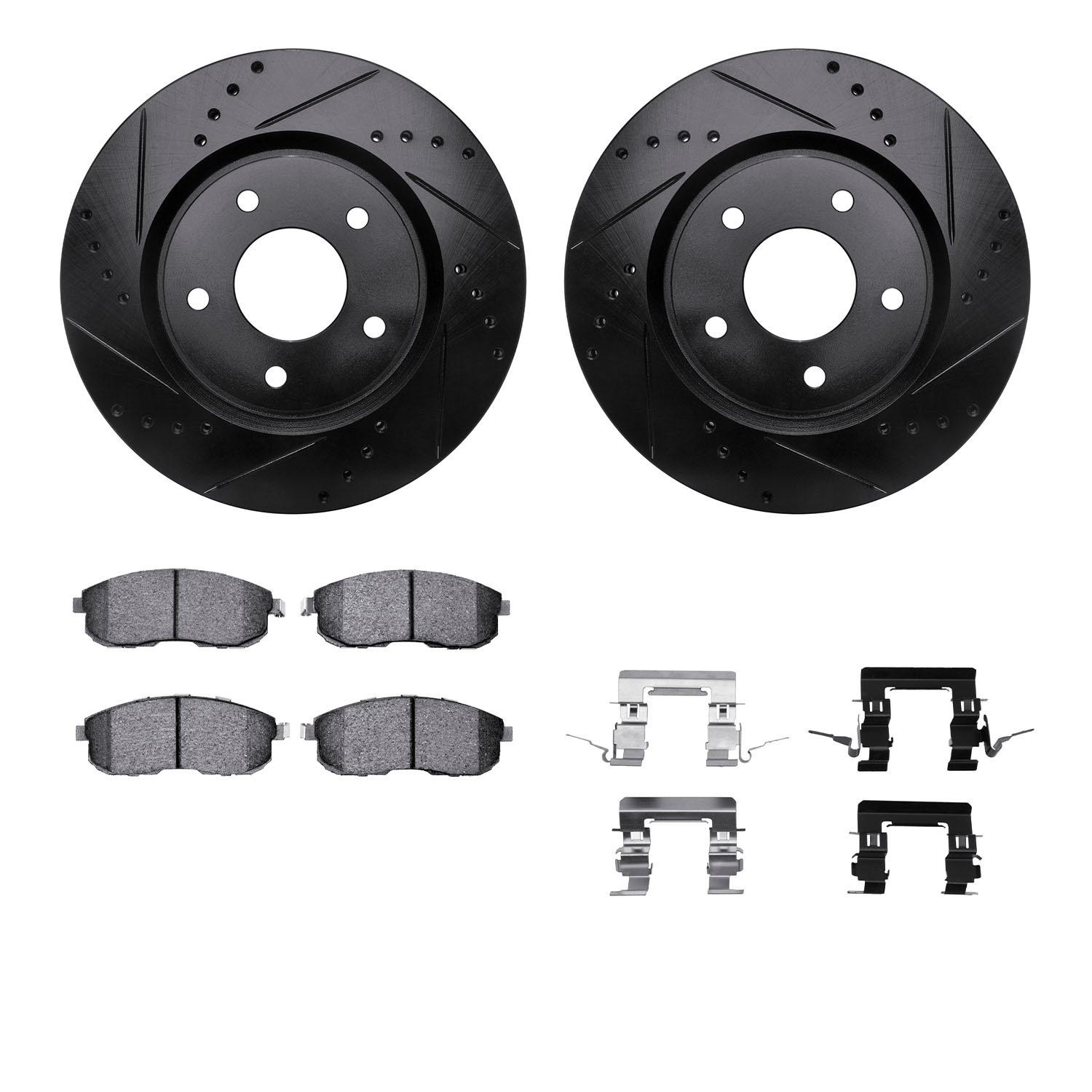 - DFC Rotors-Drilled & Slotted-Black w/ EURO 5000 Ceramic Brake Pads Incl Hdw