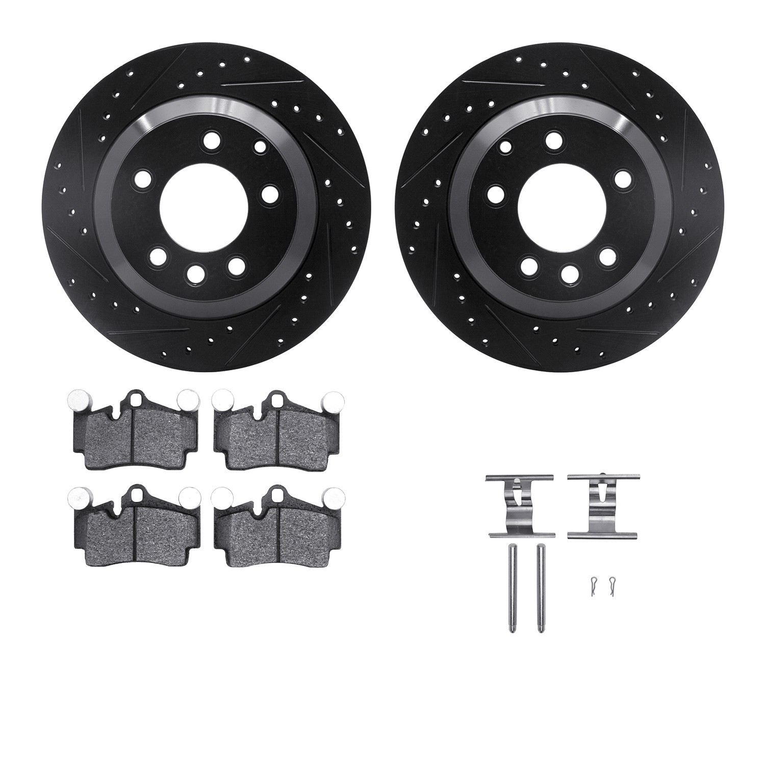 - DFC Rotors-Drilled & Slotted-Black w/ EURO 5000 Ceramic Brake Pads Incl Hdw