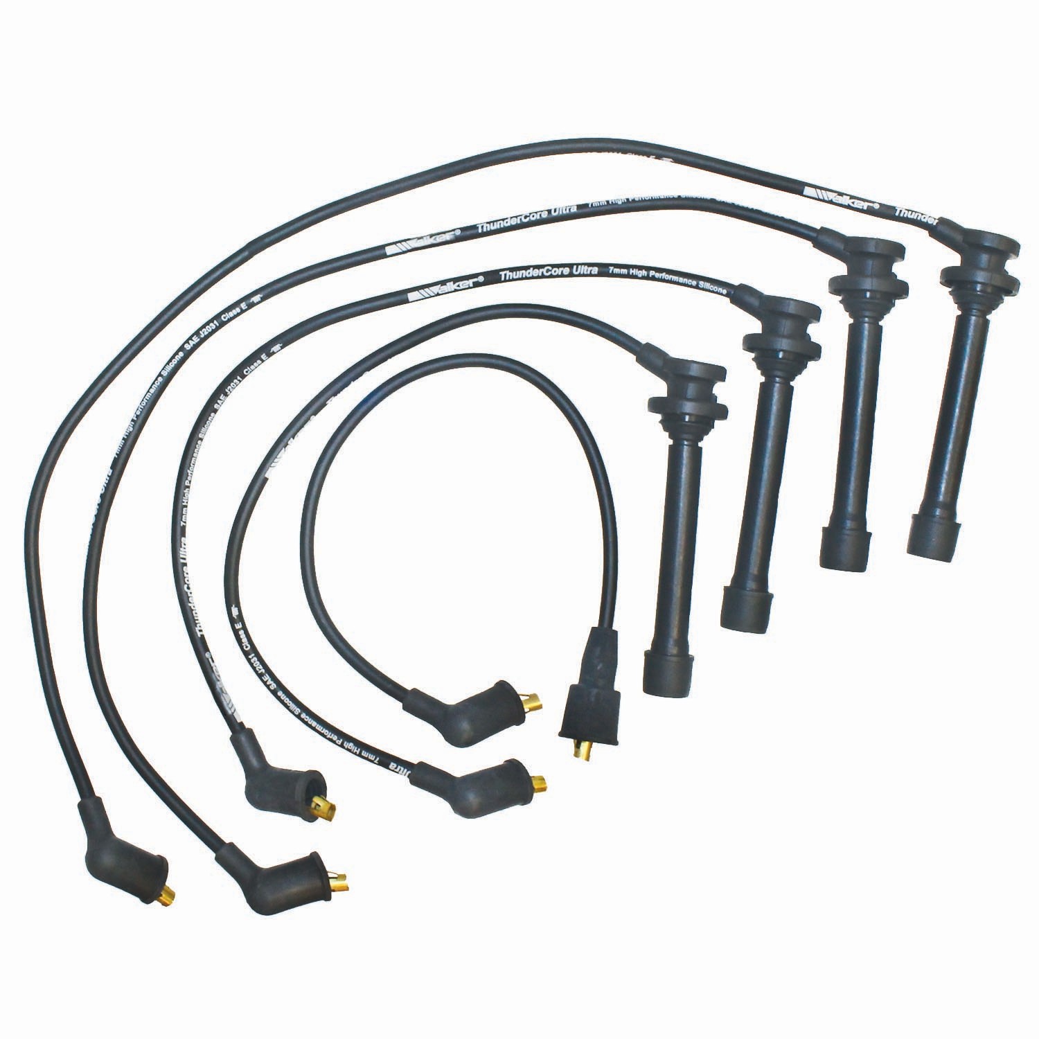 - Walker Products ThunderCore-Ultra Wire Set is precision manufactured from premium components in an ISO 9001/IATF16949 certified facility. It is designed to provide outstanding performance and is manufactured to meet or exceed all Original Equipment Manufacturer (OEM) specifications and test requirements. The set features SAE J2031 rated, Class E Silicone, Ethylene Propylene Diene Polymer (EPDM) Wire Construction. The set offers an operating temperature resistance that exceeds 450-Degrees Fahrenheit. It includes a 350-ohm Kevlar core, ferrite impregnated, stainless steel wire “MAG” wound, and features a latex silicone layer that enhances both conductive efficiency and core stability. Includes hi-temperature boots, OE quality terminals, tips, tubes, and comes with dielectric grease. Walker Products specializes in the engineering, manufacturing, and distribution of automotive engine management components. Walker is committed to meeting or exceeding the Original Equipment Manufacturer (OEM) or equivalent standards and specifications. This effort is backed by Walkers own manufacturing, product management and engineering expertise. Made in the USA © 2024 Walker Products Inc. All rights reserved.