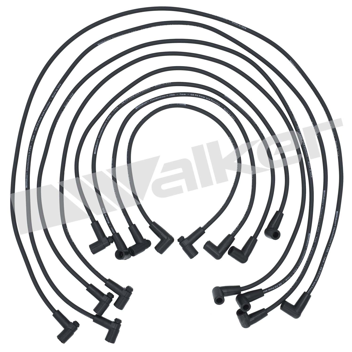 • Walker Products ThunderCore PRO Wire Set is precision manufactured from premium components in an ISO9001 certified facility in the USA. It is designed to provide outstanding performance and is manufactured to meet or exceed all Original Equipment Manufacturer (OEM) specifications and test requirements. Walker’s wire set is manufactured with hi-temp OE quality silicone boots and tips, stainless steel terminals, and tubes. It is also supplied with a packet of dielectric grease. Walker is committed to meeting or exceeding the Original Equipment Manufacturer (OEM) or equivalent standards and specifications. This effort is backed by Walkers own manufacturing, product management and engineering expertise. © 2024 Walker Products Inc. All rights reserved.