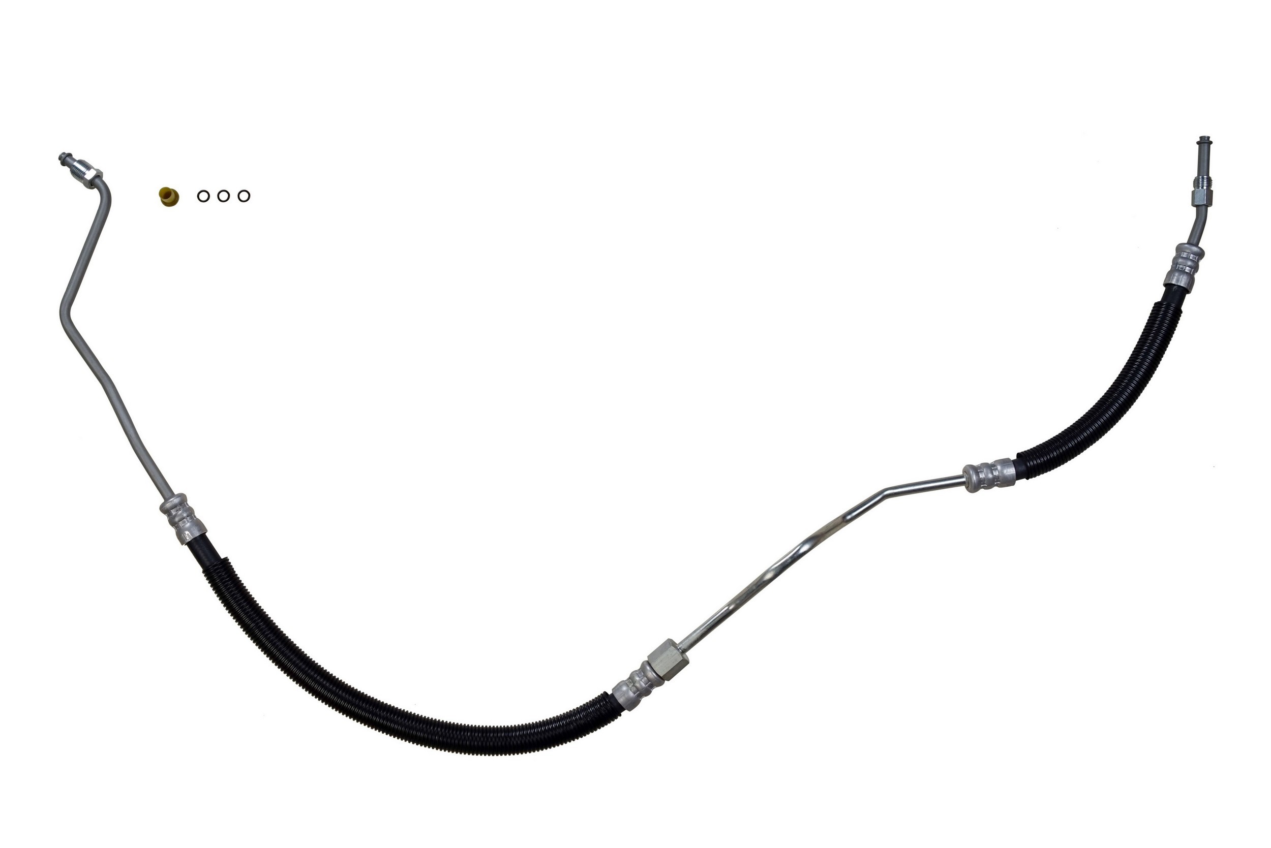- The Pressure and Return Hoses are pre-assembled with brackets, providing easy installation and reduced labor time compared to replacement versions sold as individual hoses.