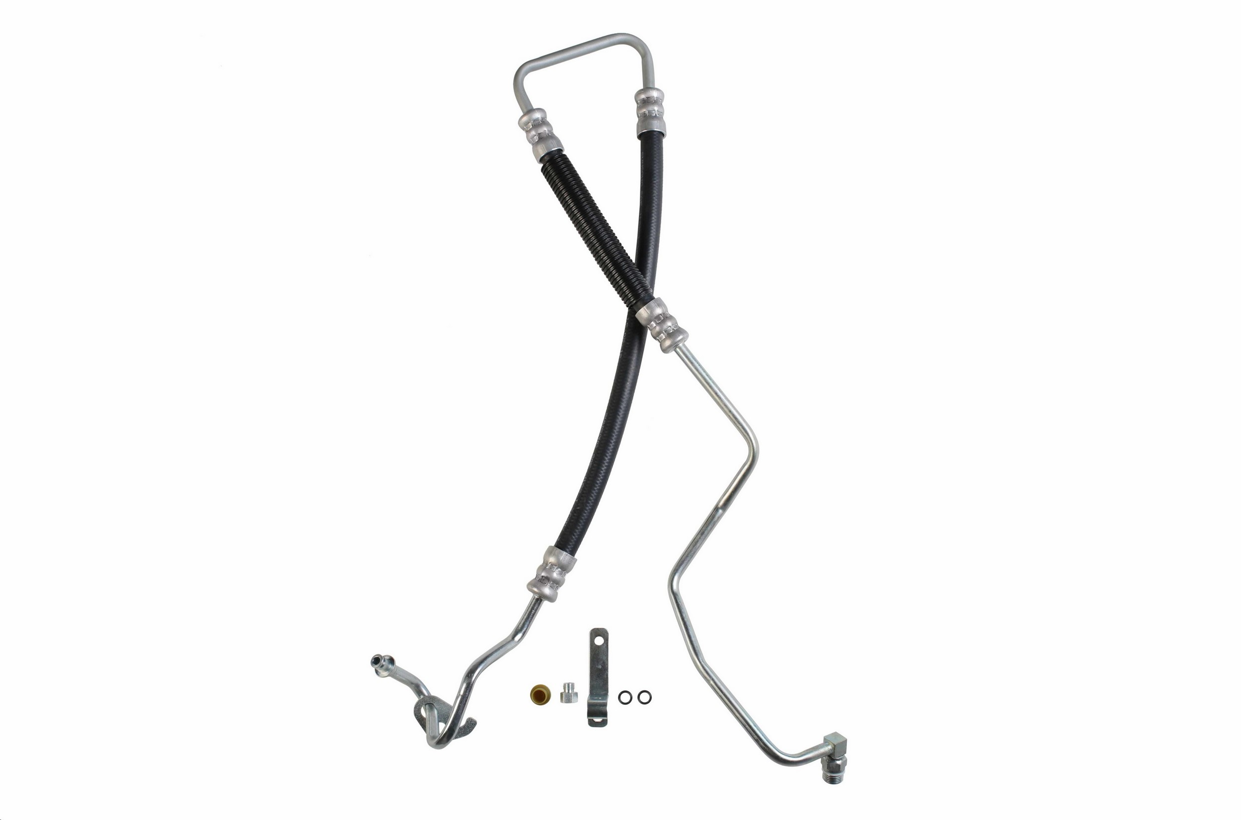 - The Pressure and Return Hoses are pre-assembled with brackets, providing easy installation and reduced labor time compared to replacement versions sold as individual hoses.
