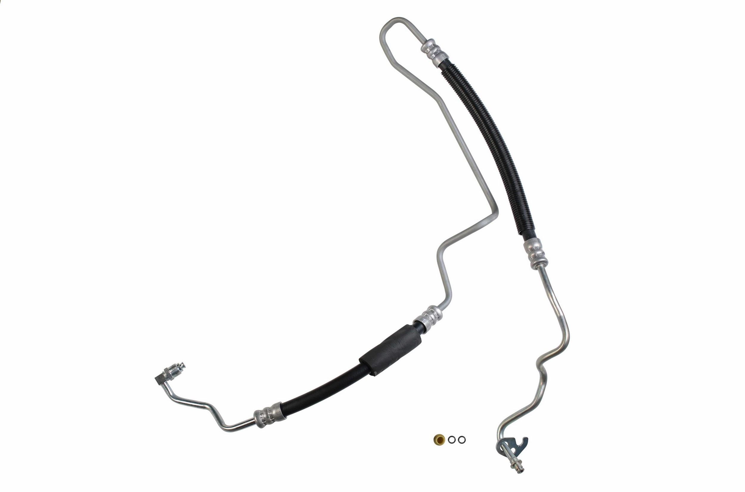 - The Pressure and Return Hoses are pre-assembled with brackets, providing easy installation and reduced labor time compared to replacement versions sold as individual hoses.