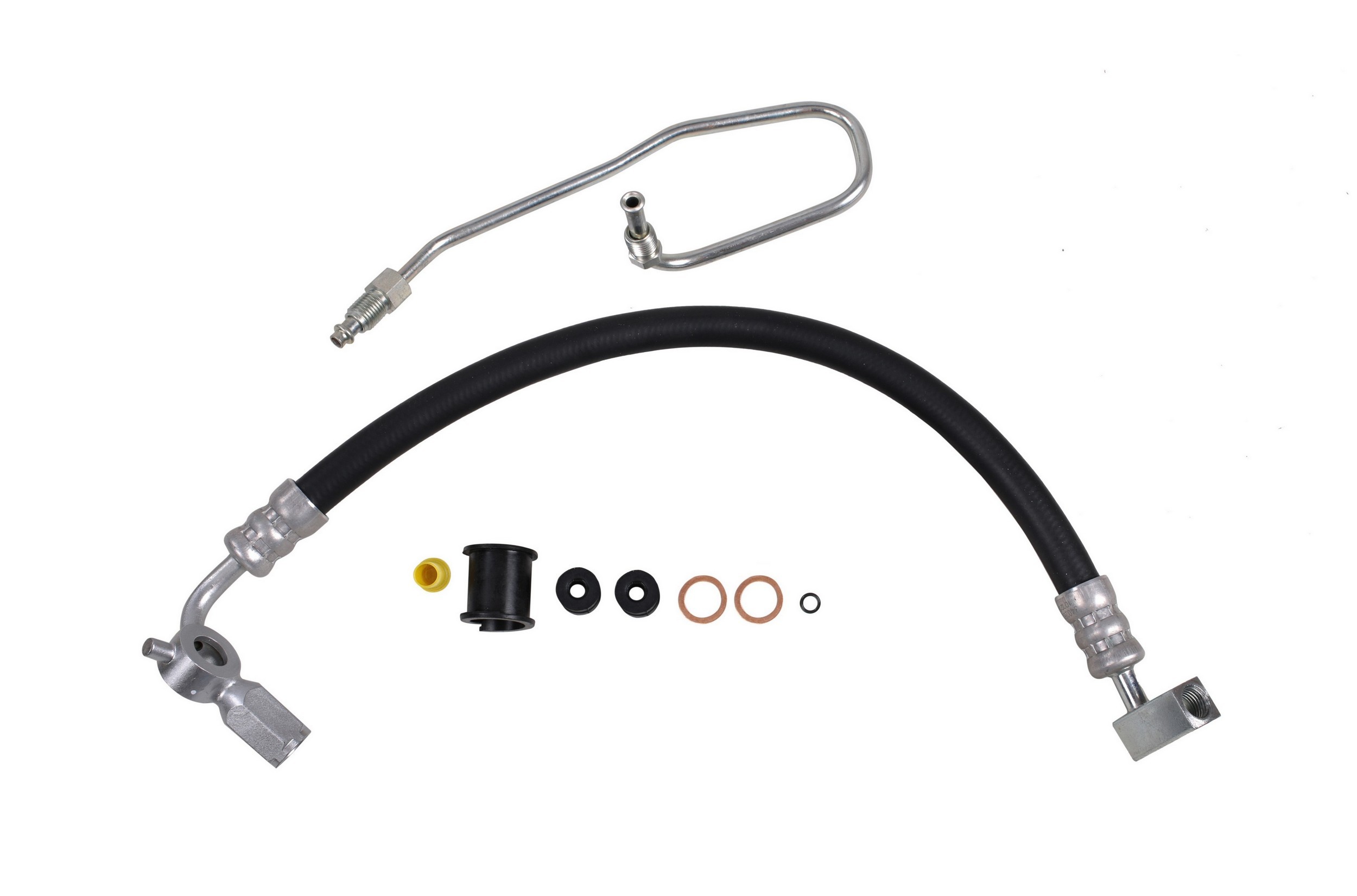 - The Pressure and Return Hoses are pre-assembled with brackets, providing easy installation and reduced labor time compared to replacement versions sold as individual hoses.