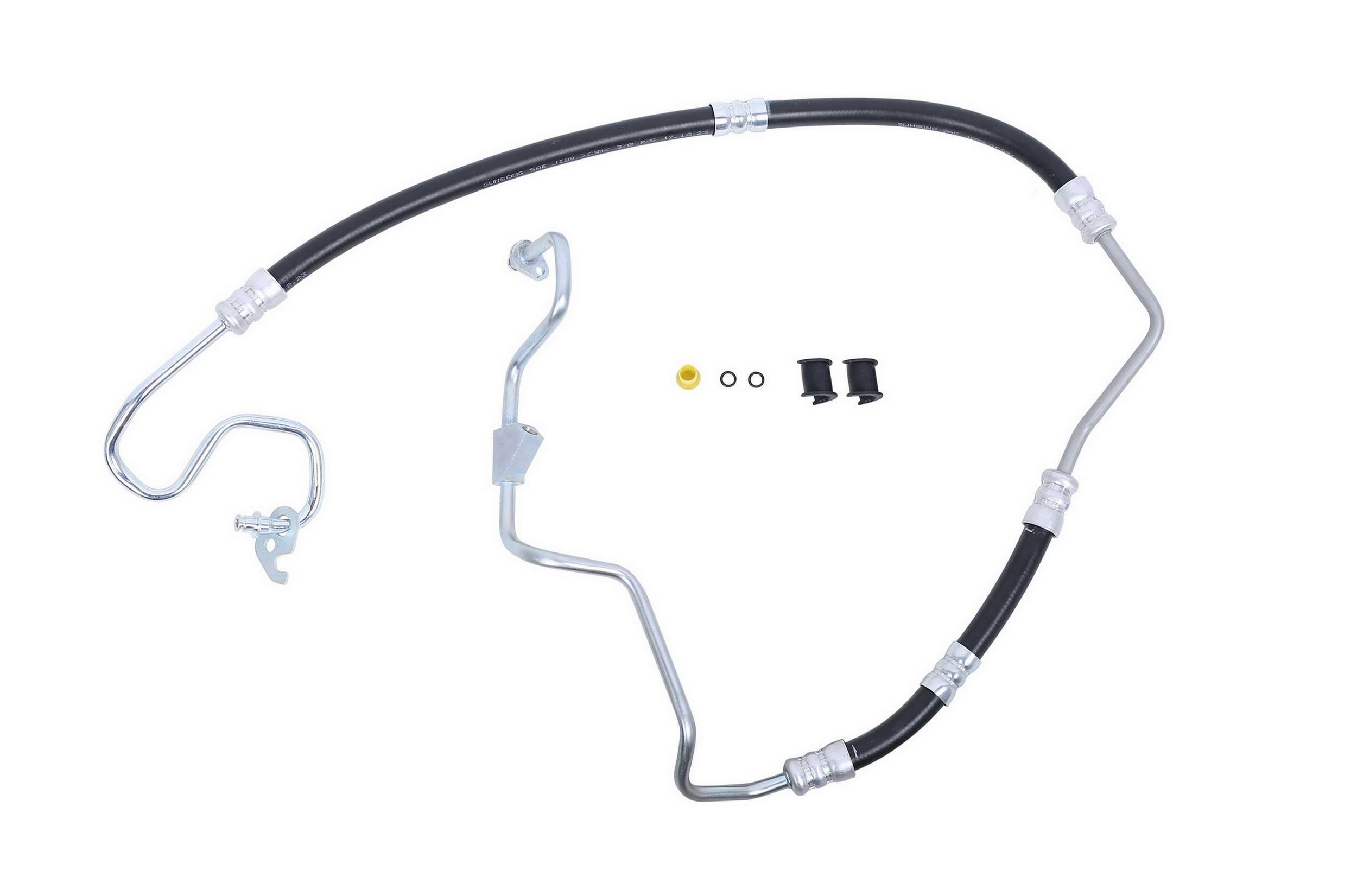 - The Pressure and Return Hoses are pre-assembled with brackets, providing easy installation and reduced labor time compared to replacement versions sold as individual hoses.