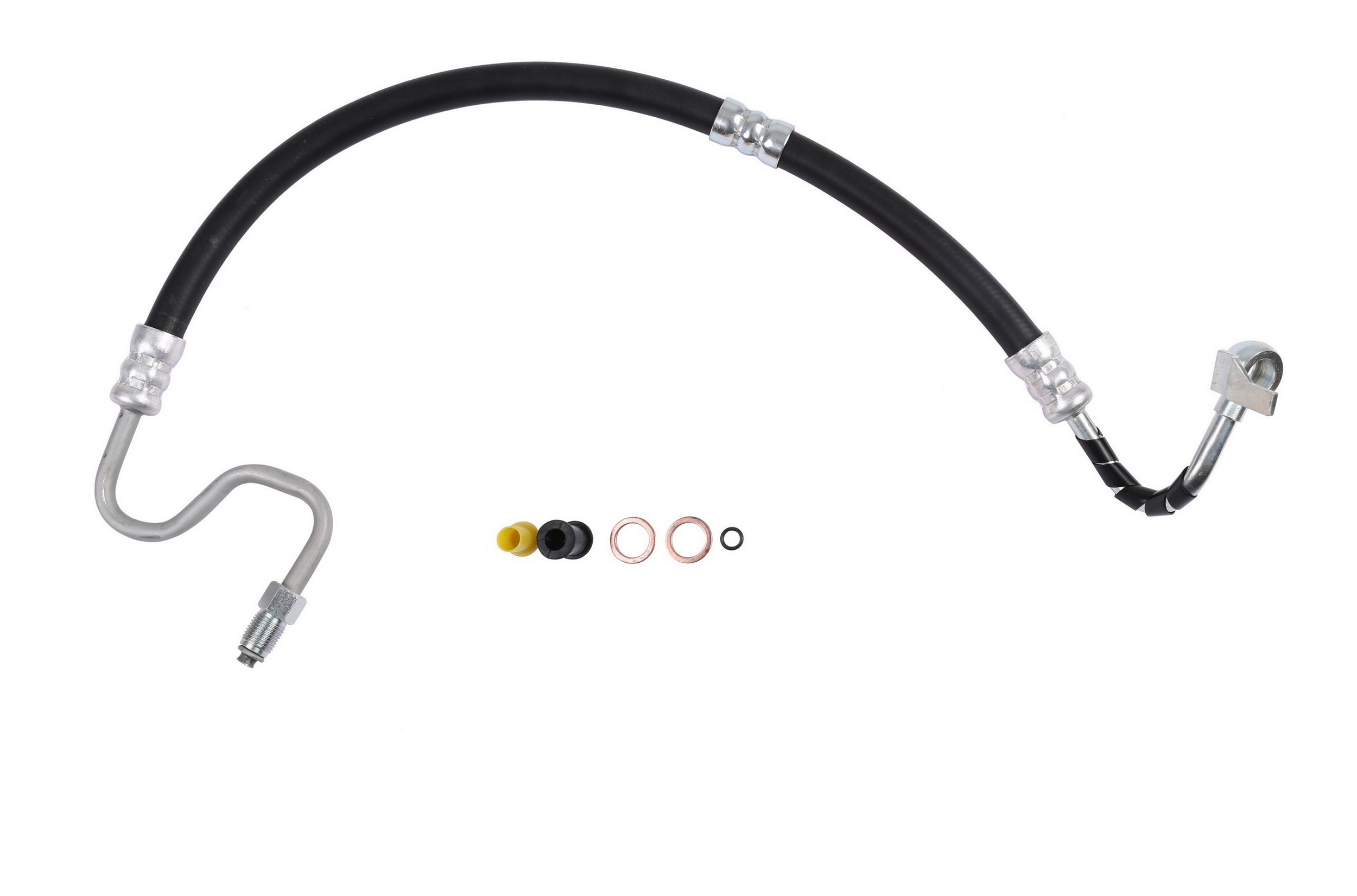 - The Pressure and Return Hoses are pre-assembled with brackets, providing easy installation and reduced labor time compared to replacement versions sold as individual hoses.