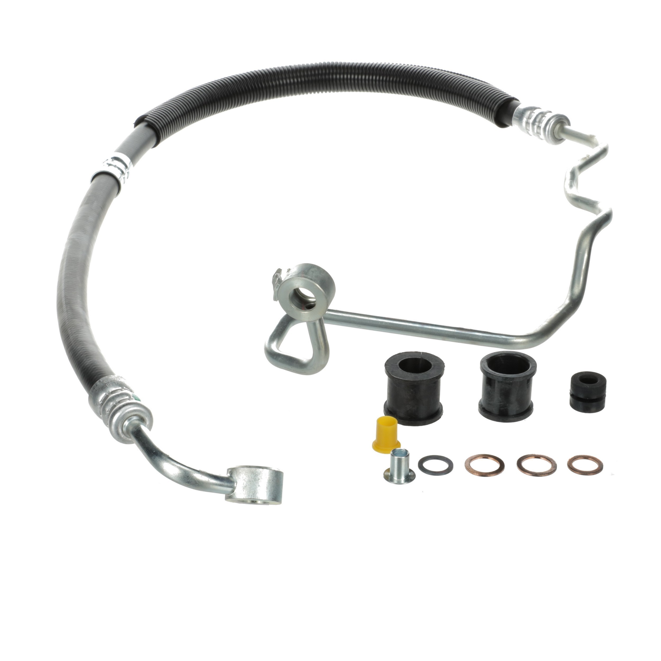 - The Pressure and Return Hoses are pre-assembled with brackets, providing easy installation and reduced labor time compared to replacement versions sold as individual hoses.
