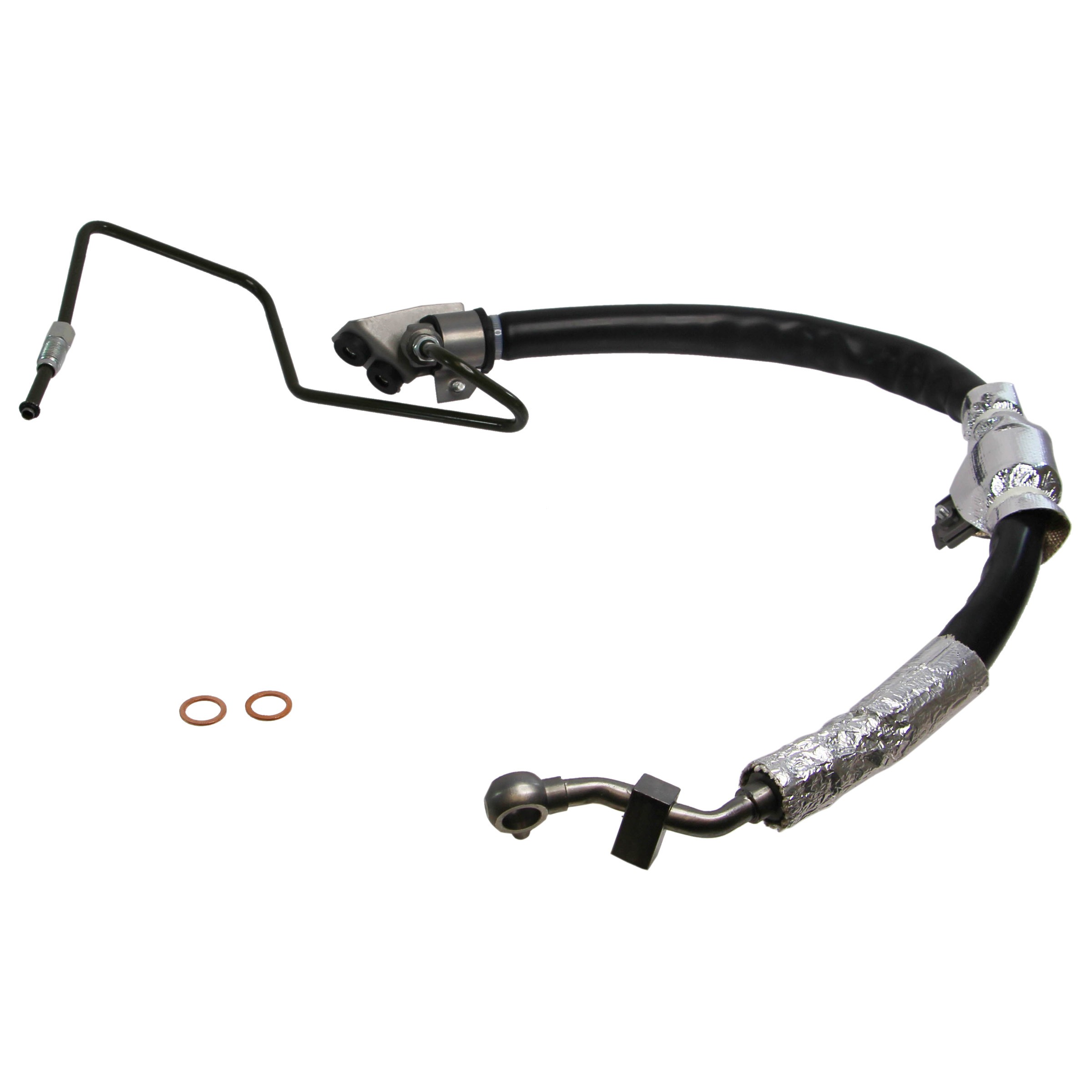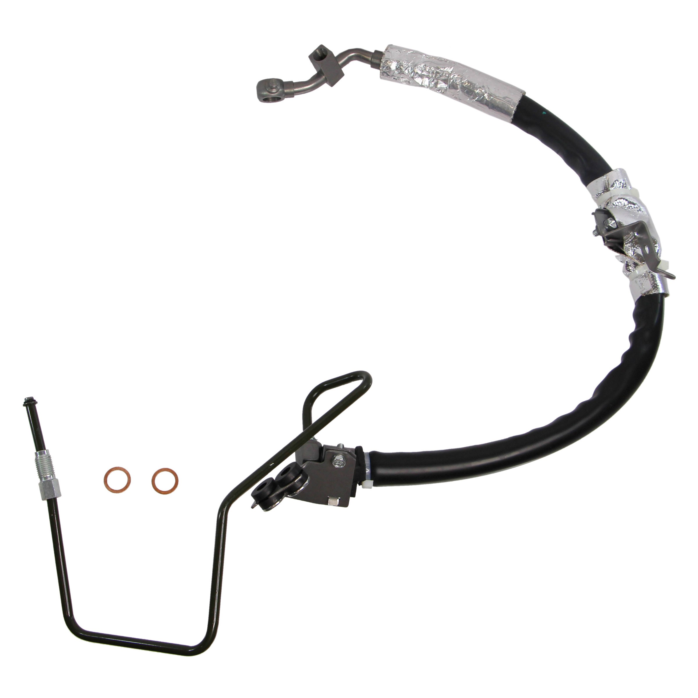 | Package Contents | One hose, two pipes, two crimps, one p/s sensor fitting, one banjo fitting, two mounting brackets, one rubber hose cover, two heat shields, two nuts, two washers |