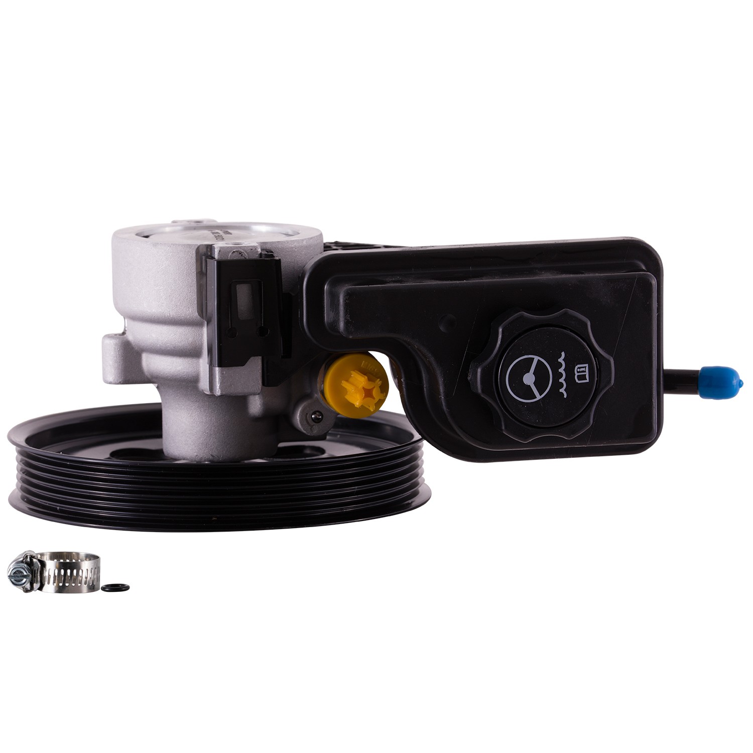- Supplied with a Pulley, Reservoir, Reservoir Cap, as well as the required Installation Seals, Washers, and Instructions